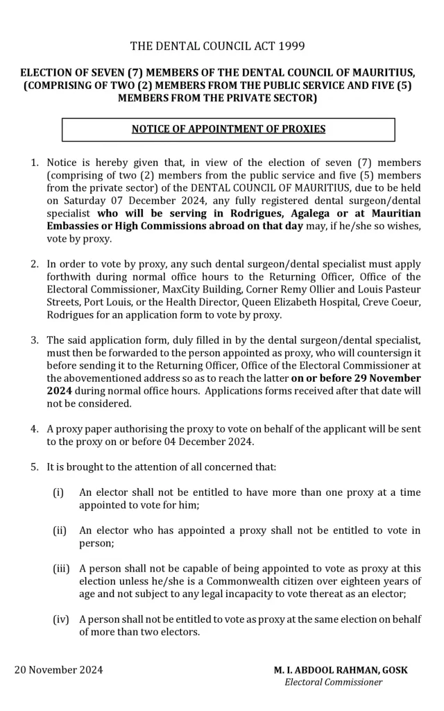 Notice of appointment of proxies